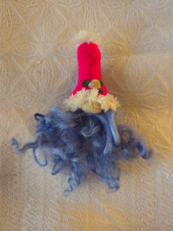 Nåltovad tomte som sitter fast på en klädnypa med magnet. En underbart julig dekoration som hjälper att hålla inköpslistor eller julkort.
